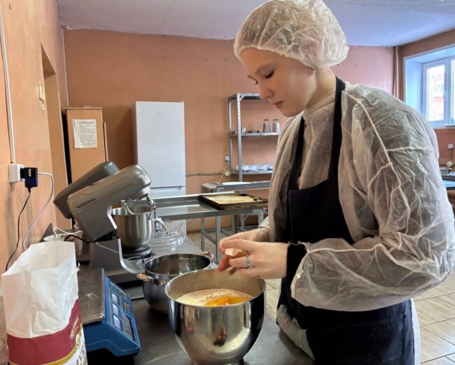 Так, в мастерской «Хлебопечение» студентка, обучающаяся по ФП «Профессионалитет», усердно совершенствует свою технику. Под руководством опытного наставника она отрабатывает сложные элементы: профессиональную работу с тестом и искусство выпечки пшеничного и ржаного хлеба, соответствующего самым высоким стандартам качества.